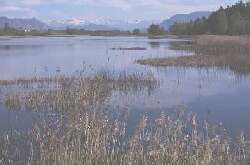reflecting the distant snow-capped peaks. It held many familiar waterbirds including