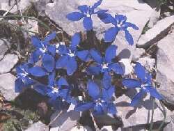 purple pansies (Viola calcarata?), Mountain Lungwort, Spring and Trumpet Gentians,